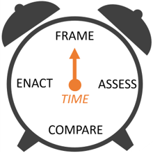 And now, we're nearing the end of the episode, so we need to address the last element, which is ‘time’. So we've had frame, assess, compare, enact, and now time. And it is absolutely appropriate that we should end ‘on time’, as it were. Time will one day end us all, just as it began us!
